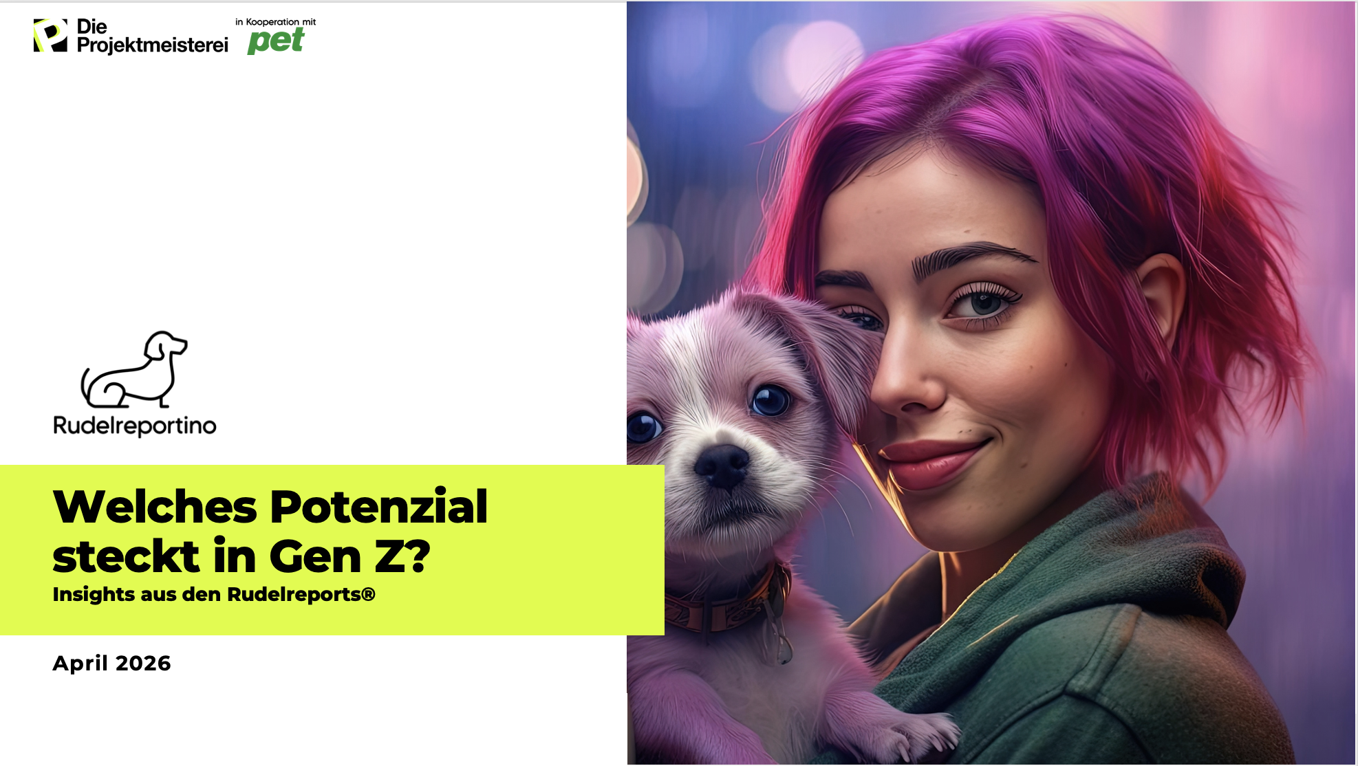 Jeder Report hat etwa 30 Seiten und widmet sich einem klar umrissenen Thema, z.B. Longevity, Hundetraining oder Besonderheiten von Gen Z. Die Inhalte basieren auf den umfangreichen Datensätzen der Rudelreport-Studien und verbinden quantitative Marktforschung mit psychologischen Insights zum Verhalten von Hundehaltern.